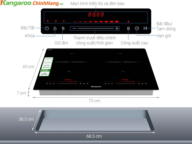 Bếp từ đôi lắp âm Kangaroo KGIC44D1C là sản phẩm hiện đại, kết hợp thiết kế tinh tế và công nghệ tiên tiến, đáp ứng nhu cầu nấu nướng đa dạng của gia đình. Dưới đây là những thông tin chi tiết về sản phẩm: