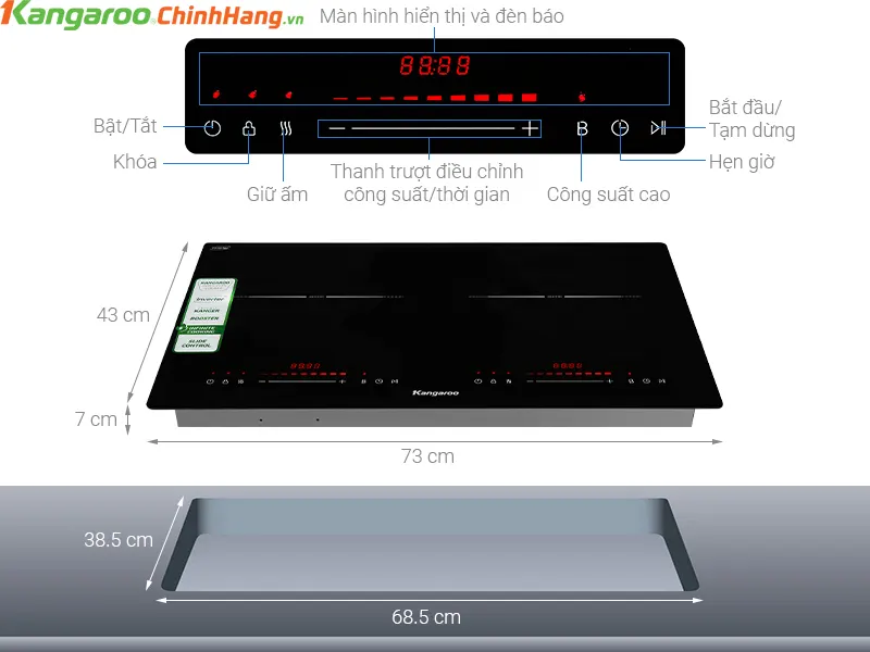 Với những ưu điểm trên, bếp từ đôi Kangaroo KGIC48D1C là lựa chọn lý tưởng cho gia đình hiện đại, đáp ứng nhu cầu nấu nướng đa dạng và đảm bảo an toàn, tiết kiệm năng lượng.