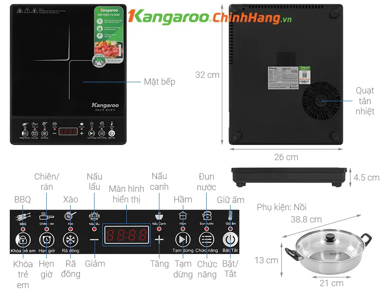 Với những ưu điểm nổi bật trên, bếp từ đơn Kangaroo KG18IC1 không chỉ giúp công việc nấu nướng trở nên dễ dàng hơn mà còn đảm bảo an toàn và tiết kiệm thời gian cho người sử dụng.