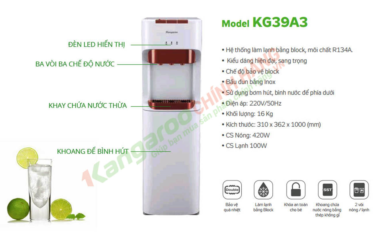 Tính năng Cây nước nóng lạnh Kangaroo KG39A3