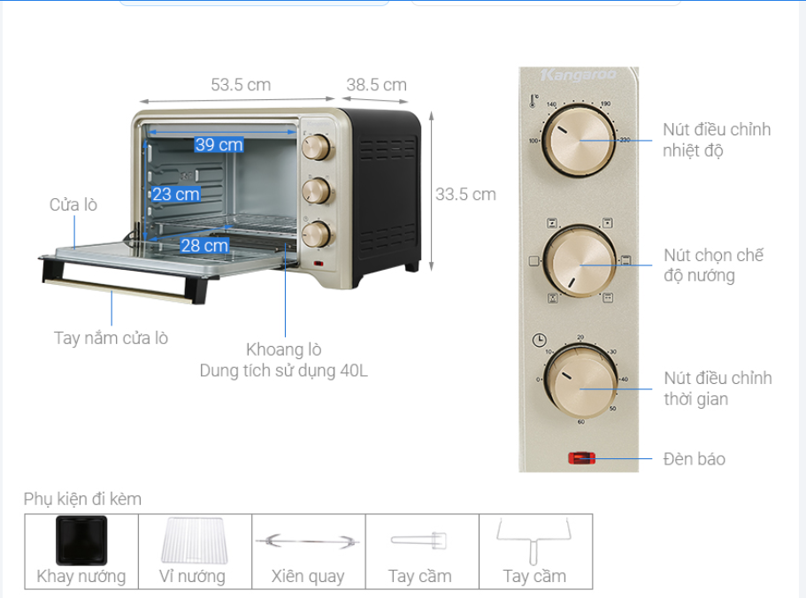 | Dung tích | 40L (Kích thước khoang: 45×38×32cm) |