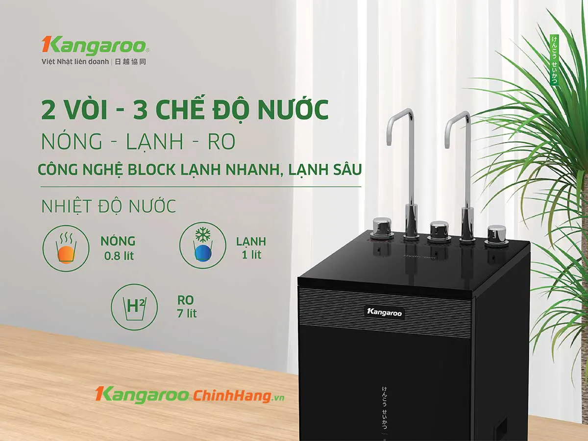 KG11A3 tích hợp 3 chế độ nóng - lạnh - hydrogen tiện ích. Dung tích bình nóng 0.8 lít và bình lạnh 1 lít sẽ đáp ứng đa dạng nhu cầu ăn uống, nấu nướng, pha chế,…