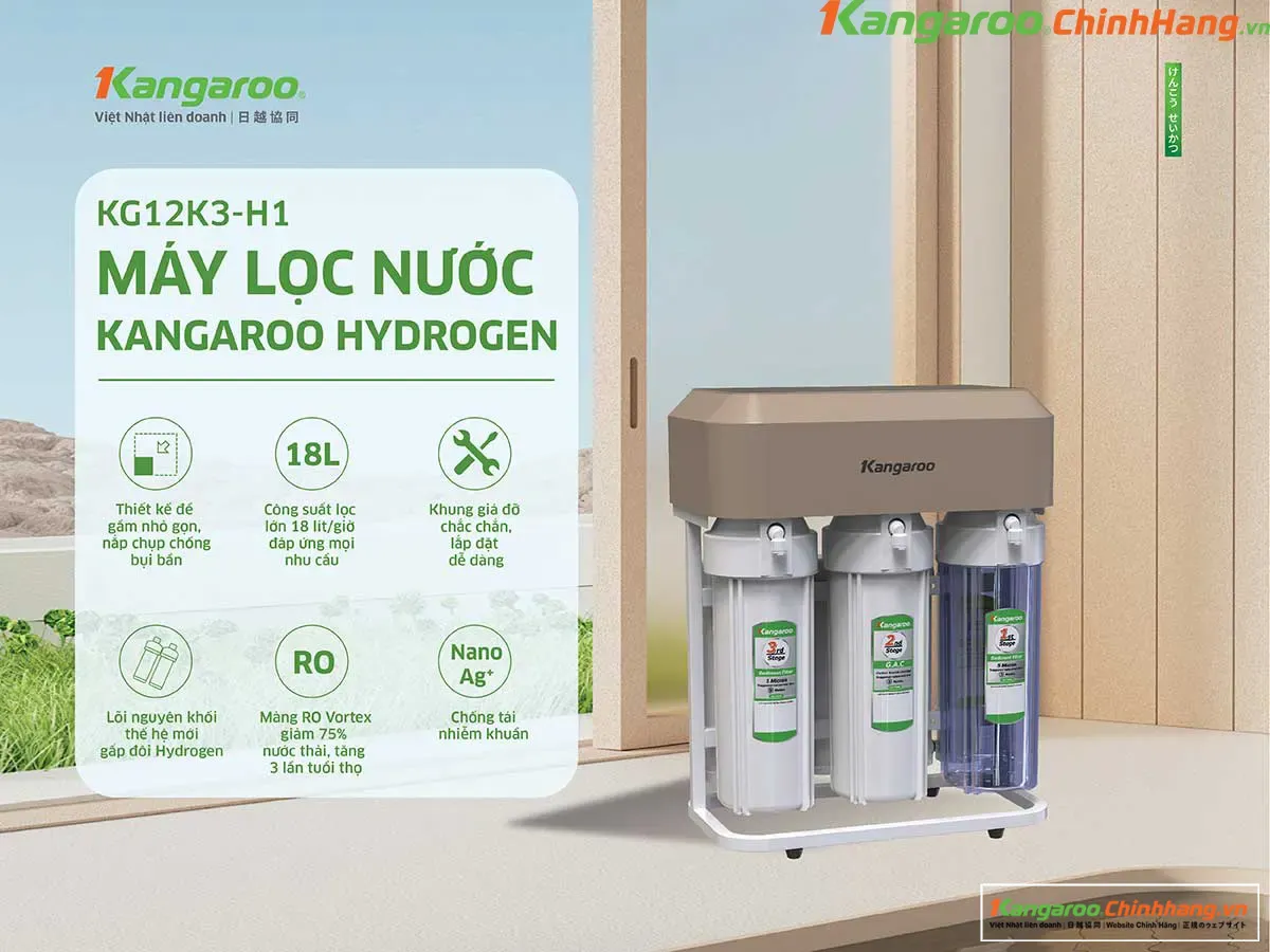 Máy lọc nước Hydrogen Kangaroo KG12K3-H1 – Nhỏ gọn để gầm, gấp đôi Hydrogen, an tâm cho sức khỏe gia đình