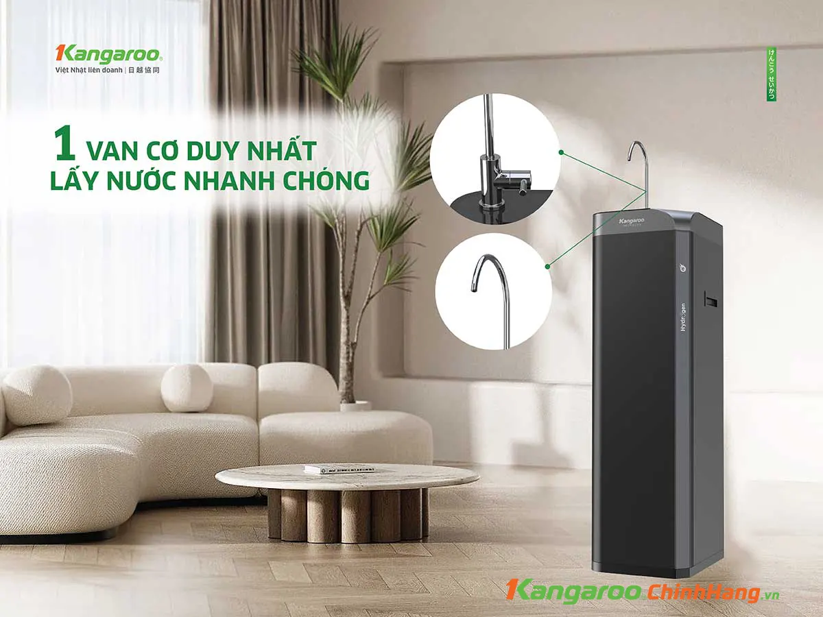 Máy lọc nước Kangaroo Hydrogen Waterfall KG10W2 sử dụng điều khiển van xoay cơ bền bỉ. Chỉ cần thao tác xoay đơn giản, bạn có thể lấy nước nhanh chóng.