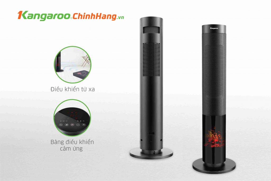 - Ngoài bảng điều khiển cảm ứng điện tử và màn hình led hiển thị nhiệt độ trên thân máy, KGFH08 còn được tích hợp điều khiển từ xa với khay để điều khiển nằm ở đằng sau máy gọn gàng. Tùy chỉnh nhiệt độ rảnh tay và từ xa vô cùng dễ dàng, tiện lợi với máy sưởi thông minh Kangaroo KGFH08.