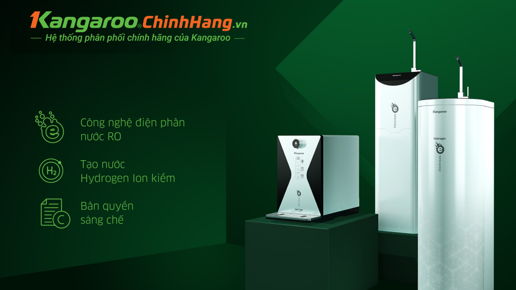 Kangaroo đã chính thức cho ra mắt các dòng máy lọc nước Hydrogen ion Kiềm. Với thiết kế cao cấp, sang trọng, màu sắc bắt mắt và rất nhỏ gọn, sử dụng công nghệ điện phân nước RO duy nhất tại Việt Nam để tạo nguồn nước ion kiềm giàu Hydrogen ưu việt, bền vững.